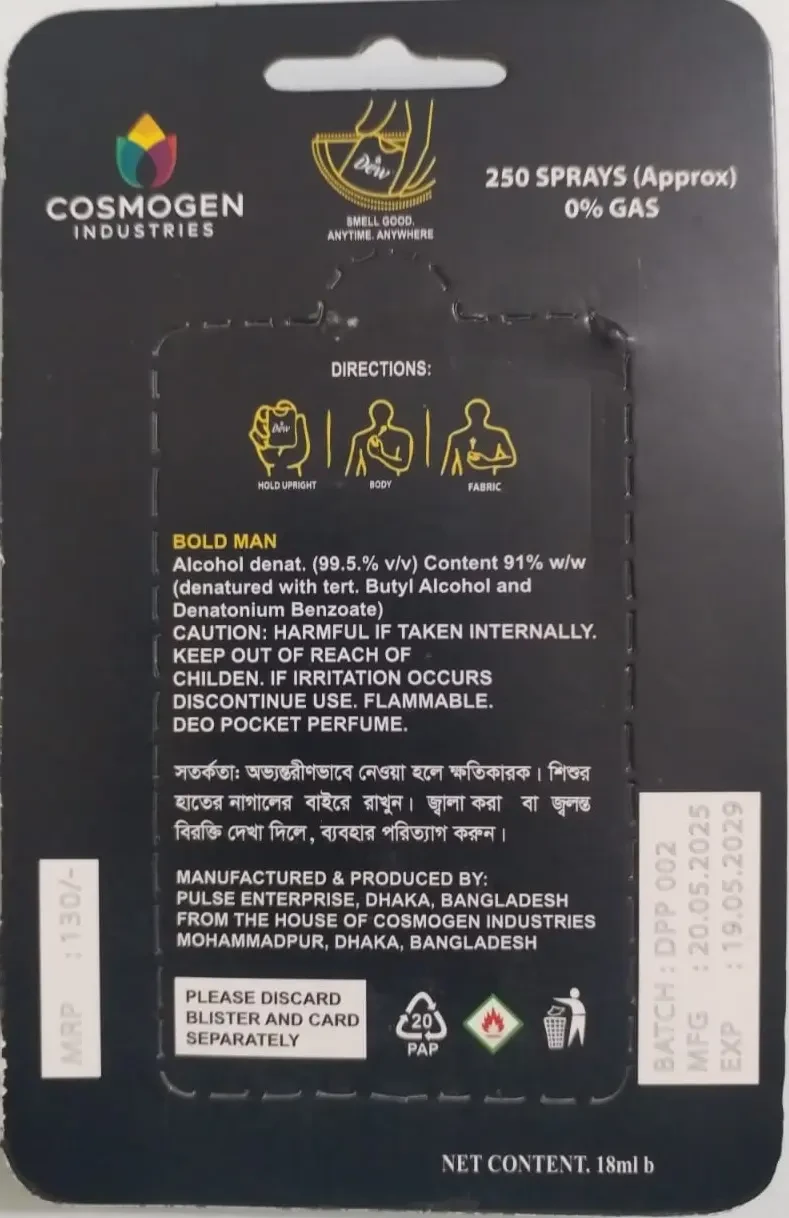 Dew Pocket Perfume – BOLD MAN 18ml (For Men)